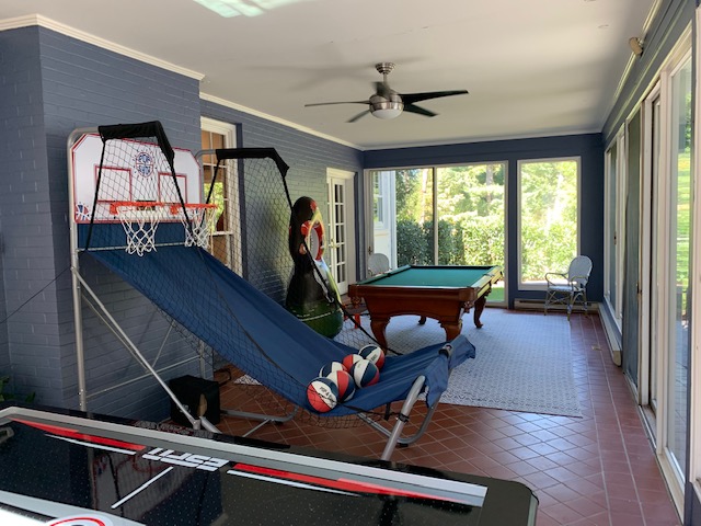 The master bedroom has a king-size bed and large bathroom with double shower heads and large bath. The other three bedrooms have three queen beds, a full bed with a twin trundle, and a queen murphy bed. With more than 5,500 square feet, there is plenty of space for entertaining in the house or in the pool area and pool house.