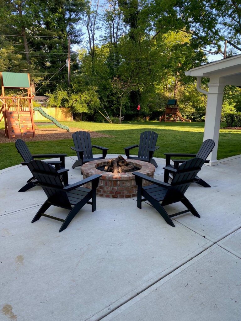 - Gas fireplace surrounded by 6 Adirondack chairs