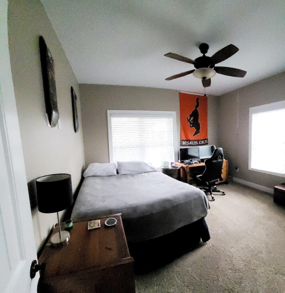 - Bedroom 4: one queen bedroom, downstairs