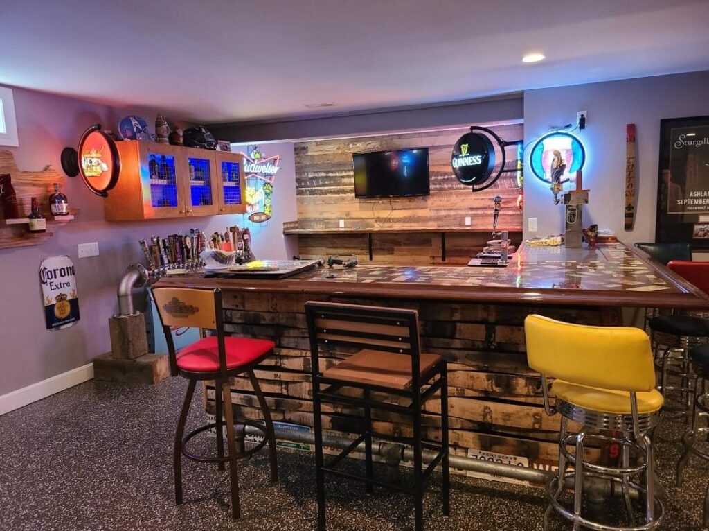 - bar in the basement along with projection screen TV