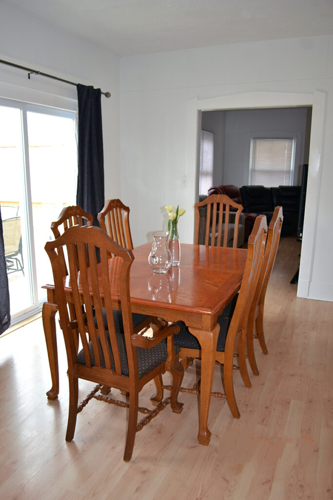 - Living Room has 3 couches, 65″ TV, space for air mattress, leads to front porch for smoking.