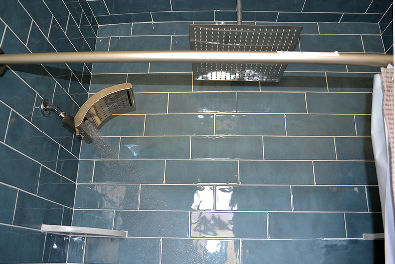 - Upper Level Bathroom: Newly remodeled shower/tub with multiple shower heads; both ceiling and wall. Dual entry into room. Mirrored vanity above sink.