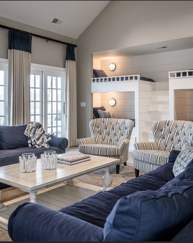 - Bedrooms: K / Q / Q / Q / 4 twin size bunk/rec room