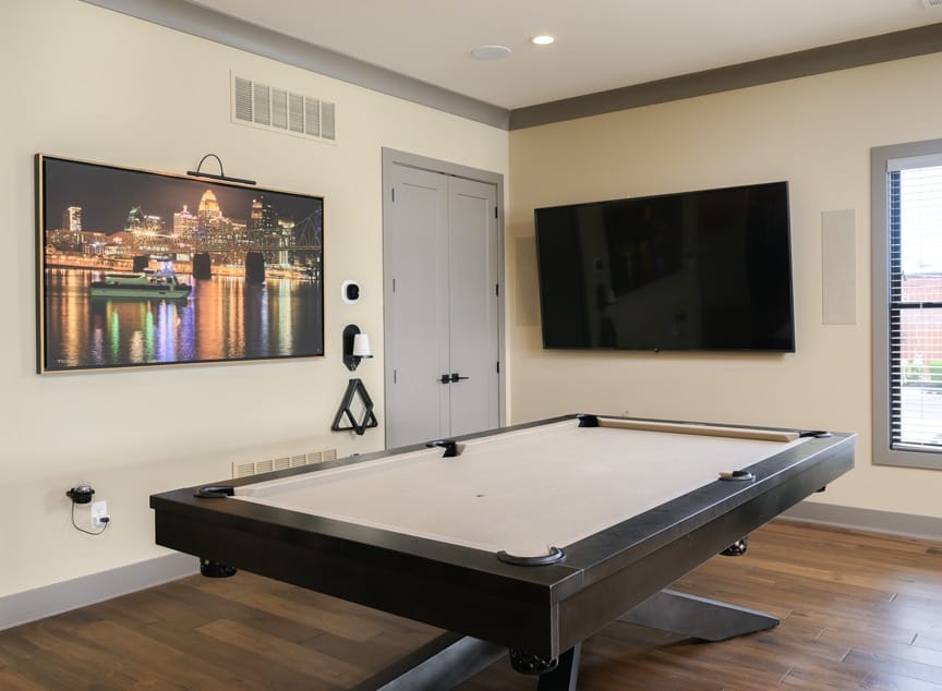 Riverfront Derby estate, 12 minutes from Churchill Downs. Four levels of horse-themed elegance featuring a rooftop lounge with wading pool, private bourbon speakeasy, theatre, game room, and gym. Built-in sound system throughout. Parking for 10 vehicles. Walk to bars & restaurants. The ultimate Kentucky Derby Week experience.