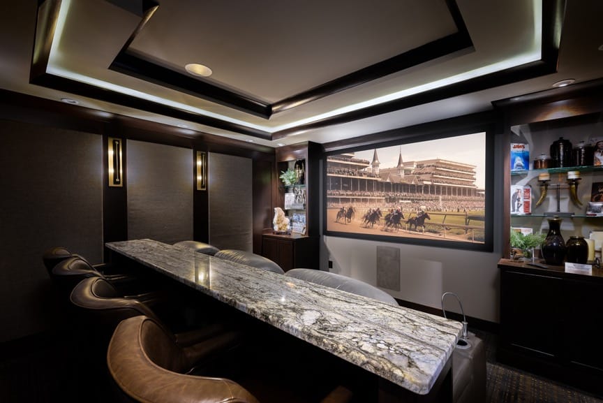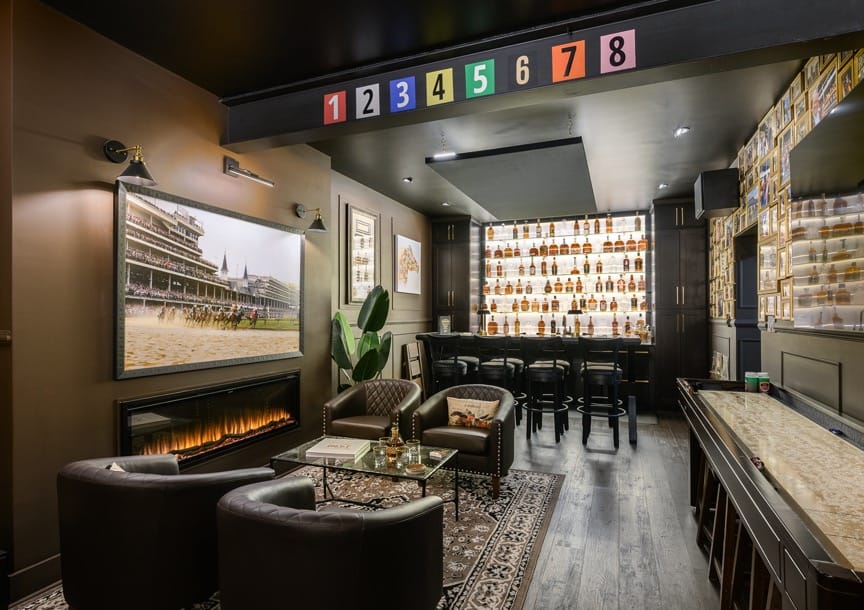 Private garage and expansive drive with parking for up to 10 vehicles. Game lounge, gym, and bourbon speakeasy with Derby ambiance.